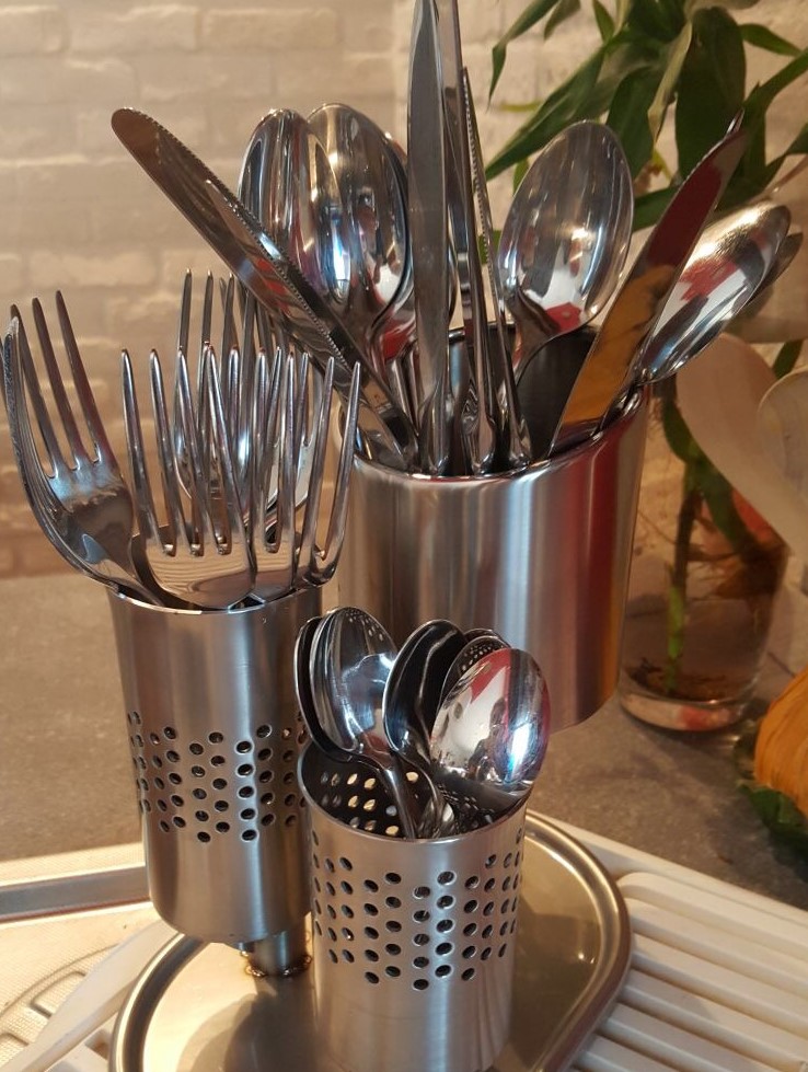 Il portaposate Katty è un articolo compatto e robusto full inox, facile da pulire e poco ingombrante costruito su richiesta per ospitare 2 servizi da 24 posate – totale 48 pezzi..