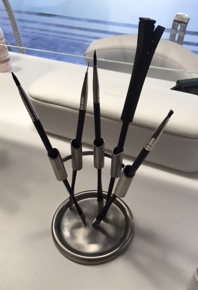 Articolo fatto a mano, molto leggero, stabile e poco ingombrante, ti aiuta a tenere ben separati i pennelli dando la possibilità di vedere la pulizia degli stessi e lo stato delle due punte, facile da pulire ti permette di avere sempre pronti a portata di unghie n° 6 utensili.